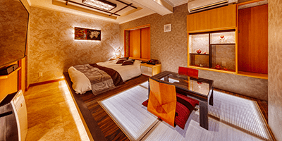 ラグジュアリーなインテリアに、檜風呂や光る畳など 女性にやさしいお部屋が揃っています。 カップルはもちろん、女性同士やおひとりでもあなた次第で自由に遊べるホテルです。