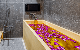 足湯や檜風呂など、”癒しのワンシーン”をテーマにしたお部屋をご用意。 また遊び心満載の設備としてVRルームやダーツなどでアクティブに楽しもう!